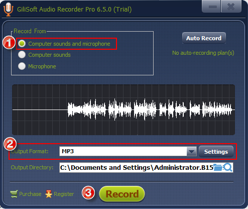 Choose the "Computer sounds and microphone". You should now see a computer sounds and microphone waveform displayed on the window.