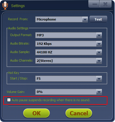 Audio silence detection/Voice Activation is a useful tool for Auto pause suspends recording when there is no sound. Recording starts again when talking resumes—perfect for conference room meetings. You can enable it in settings.