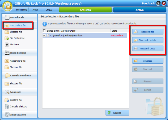 I passaggi seguenti ci diranno come utilizzare Gilisoft File Lock per nascondere i file e come visualizzarli nuovamente quando necessario.