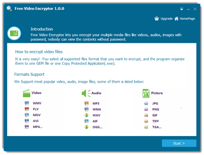 Any Video Encryptor effettua una protezione con algoritmo Advanced