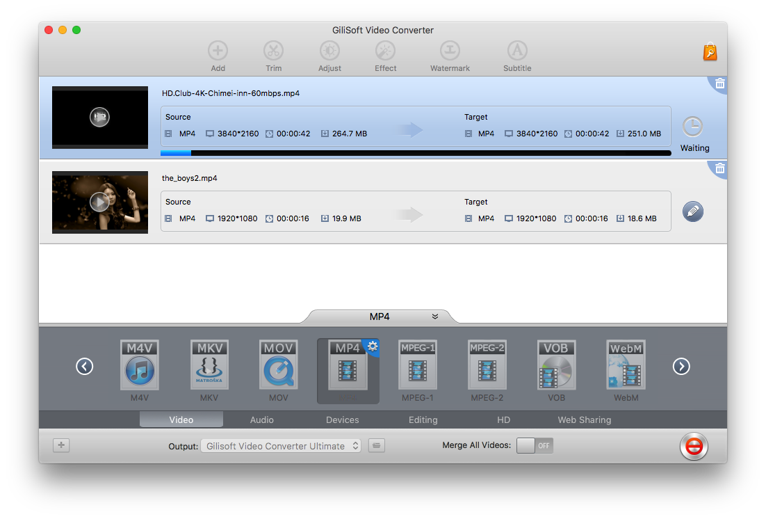 GiliSoft Video Converter for Mac is simply the best choice for your video conversion needs because it supports all the major file formats. Compatible with over 160 video formats, chances are we’ve got your desired output file format covered. To keep up with rapidly advancing technology, GiliSoft Video Converter adds new formats as they're released!